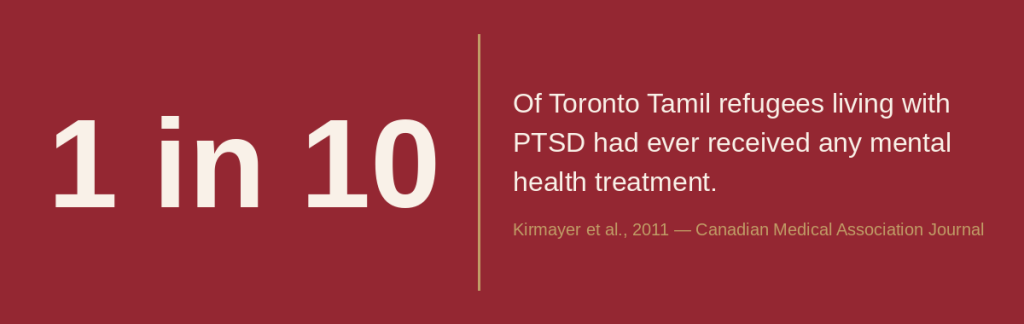 A study of Toronto Tamil refugees found that 12% met clinical criteria for PTSD – somewhat above the roughly 9% average seen across refugee populations resettled in developed countries, which is itself already high.